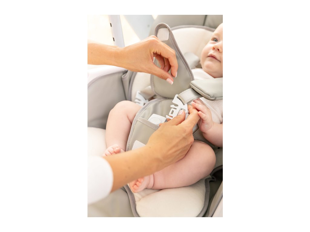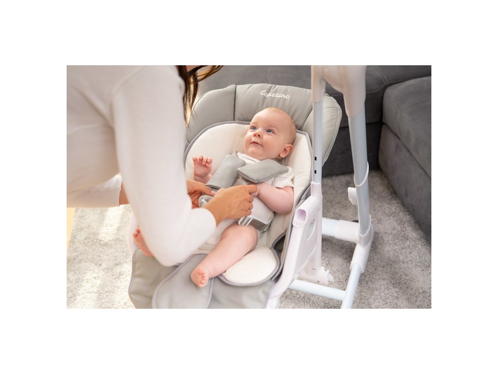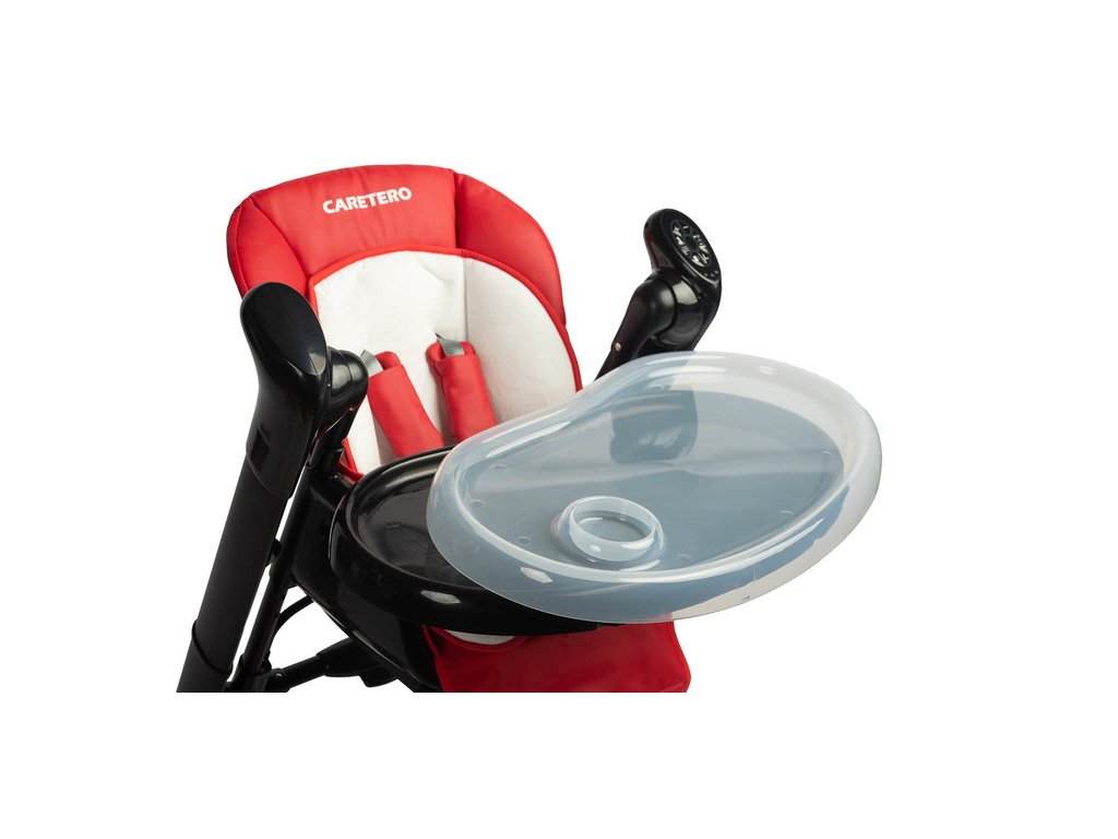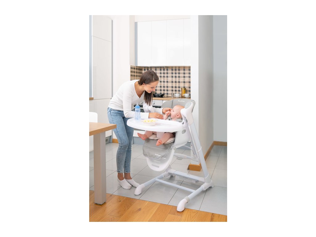 - priestranné operadlo sa dá sklopiť do ležiacej polohy (bez ohľadu na sedadlo - 4 úrovne nastavenia) - dieťaťu je zabezpečené pohodlie pri jedle a relaxácii