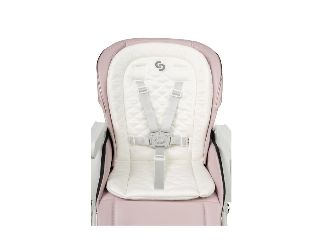 Čalúnenie z eko kože zaisťuje pohodlie a jednoduché čistenie – stačí utrieť povrch vlhkou handričkou, aby ste odstránili každodenné škvrny. Stolička je vybavená ďalším mäkkým vankúšom, ktorý poskytuje ideálnu oporu a pohodlie počas každého jedla. Odnímateľná vrchná vrstva tácky, ktorú je možné rýchlo vybrať a dôkladne umyť, je ideálna na udržiavanie hygieny po každom jedle.