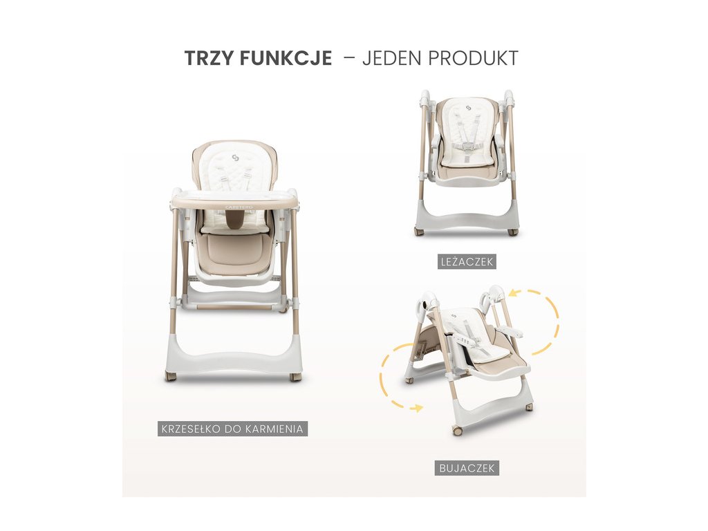 Multifunkčná detská stolička Nesto kombinuje tri funkcie – slúži ako pohodlná detská stolička a v priebehu niekoľkých okamihov sa dá premeniť na ležadlo alebo hojdačku. Vďaka jednoduchému uzamykaciemu mechanizmu vytvorí v priebehu niekoľkých sekúnd útulné miesto na oddych a hojdanie vášho dieťaťa. Je to praktické riešenie pre rodičov, ktorí si cenia funkčnosť a chcú ušetriť miesto doma.