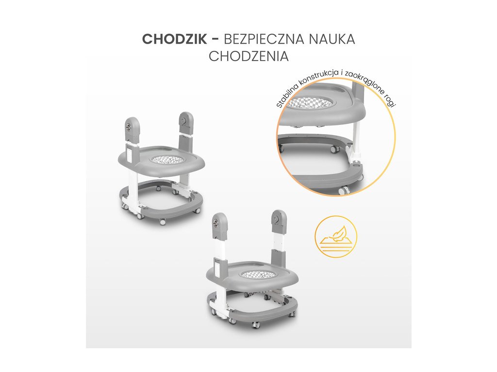 Funkcia chodítka podporuje samostatnú mobilitu a pomáha vášmu dieťaťu bezpečne robiť prvé kroky. Stabilná konštrukcia a zaoblené rohy chránia vaše dieťatko pred zraneniami počas hry a nastavenie výšky umožňuje prispôsobiť chodítko výške vášho dieťaťa, čím sa zabezpečí pohodlie v každej fáze učenia sa chôdze. Vstavaný podnos navyše umožňuje pohodlné a bezpečné hranie, učenie sa alebo podávanie občerstvenia.