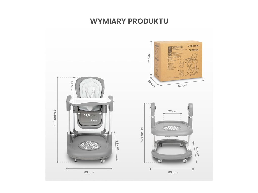 CARETERO Stolička na kŕmenie 3v1 SITRON GREY