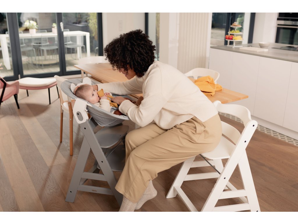 V ROVNAKEJ ÚROVNI OČÍ OD PRVÉHO DŇA // Či už si dávate pohodovú večeru alebo rýchle cappuccino, vysoká stolička Alpha+ s nástavcom pre novorodeniatka zaistí, že vám vaše maličké bude vždy na blízku a v rovnakej úrovni očí.