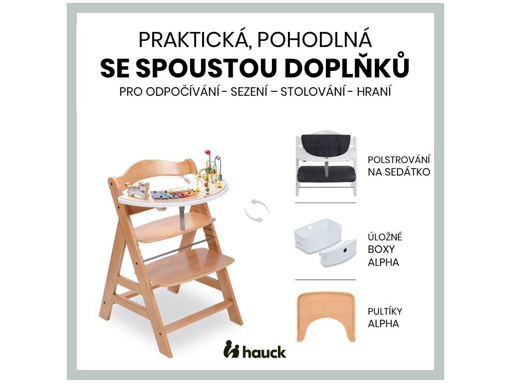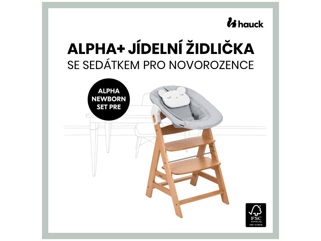 Hauck Alpha+ drevená stolička+novorodenecký set Pre, 0m+, Nature Grey