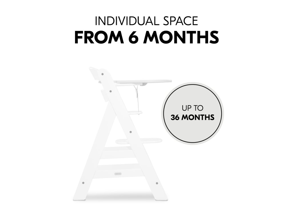 Veľké pohodlie vďaka polstrovaniu // Pult je kompatibilný s ďalším príslušenstvom pre vysoké stoličky Alpha+, napríklad s pohodlným polstrovaním sedadla a operadla vysokej stoličky, ktoré poskytuje vášmu dieťaťu väčšie pohodlie pri sedení.