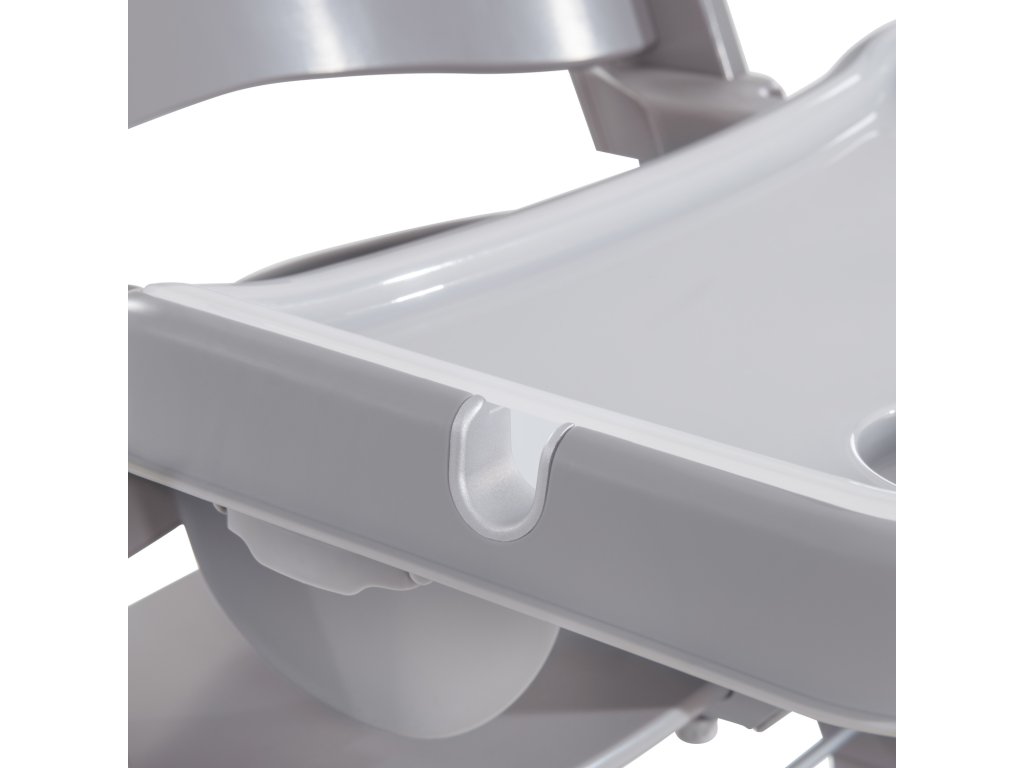 Rastúci jedálenský pultík // Tento jedálenský pultík je možné jednoducho pricvaknúť na základňu stoličky Alpha+. Posúva sa do 3 hĺbkových úrovní a je možné ho prispôsobiť veľkosti dieťaťa. Vďaka vyvýšenému okraju a priehlbine na pohárik zostane všetko na svojom mieste. Pokiaľ pultík nie je potrebný, jednoducho sa odstráni.