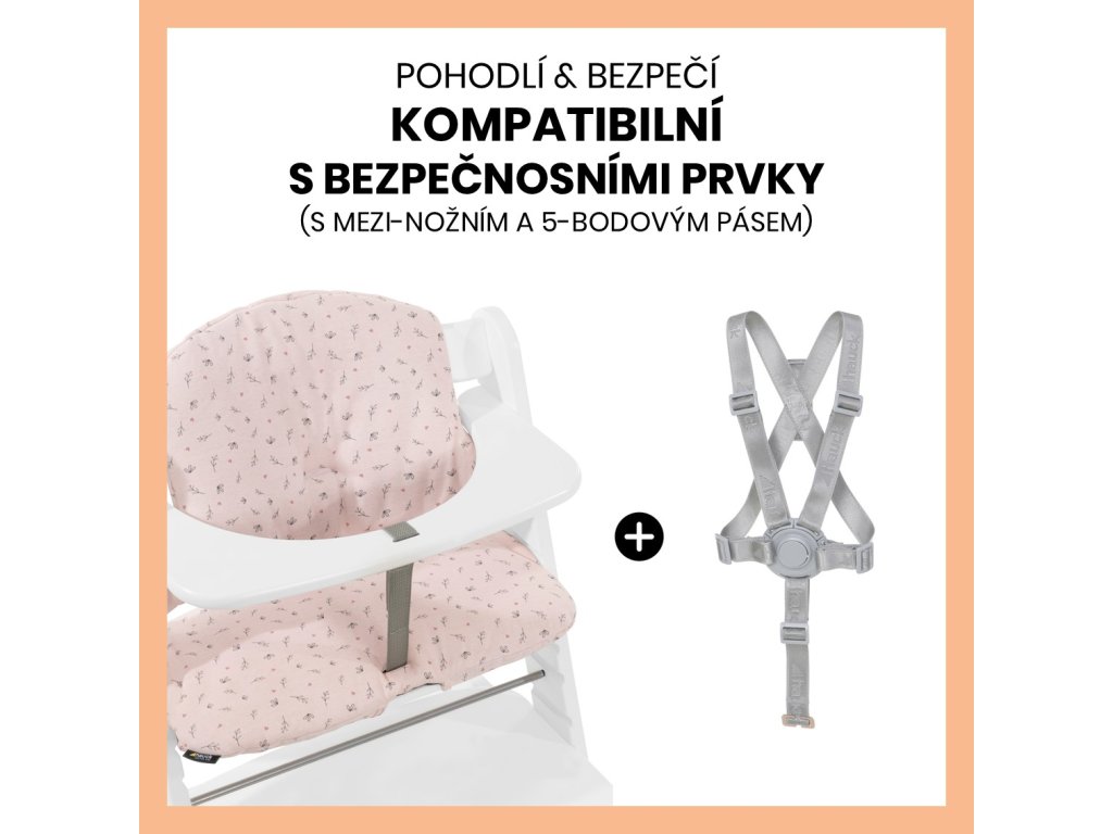 SEDADLO JE KOMPATIBILNÉ S MEDZI-NOŽNÝM A 5-BODOVÝM BEZPEČNOSTNÝM PÁSOM // Všetky drevené stoličky hauck sú vybavené rozkrokovým a päťbodovým bezpečnostným pásom. Polstrovanie je plne kompatibilné s týmito bezpečnostnými prvkami tak, aby vaše dieťatko mohlo byť vždy v pohodlí a bezpečí – v každom veku!