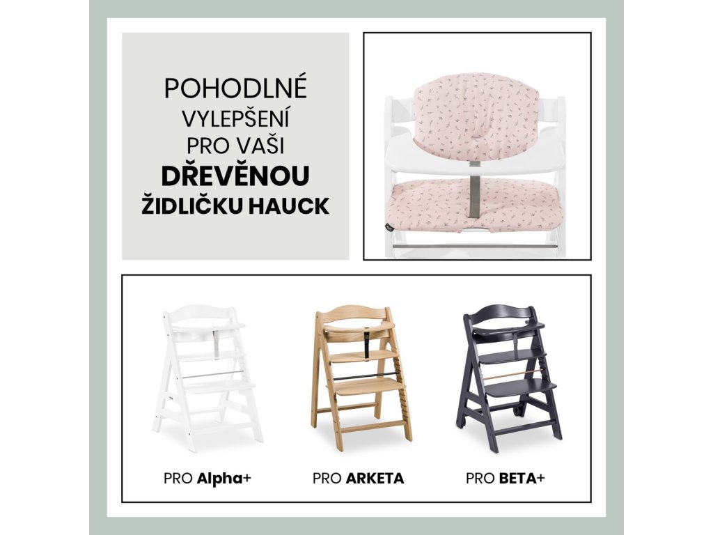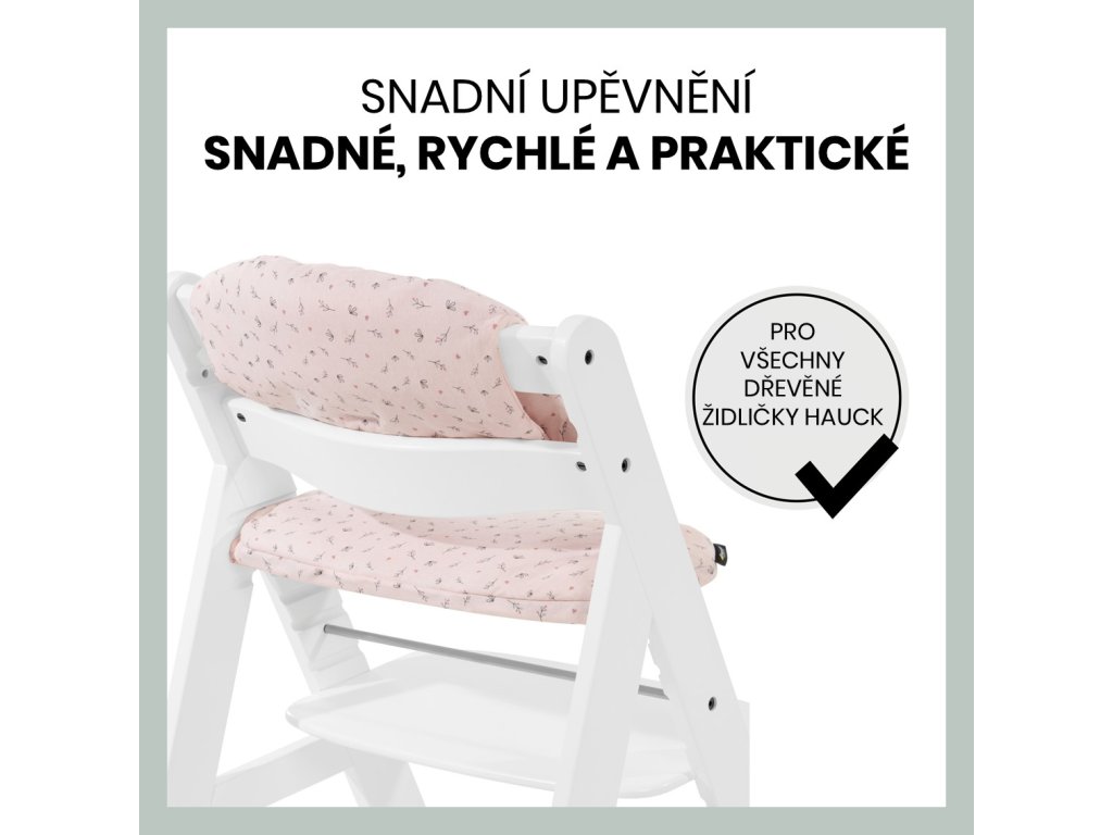 Naozajstné pohodlie vďaka dvojitému polstrovaniu - Hľadáte mimoriadne pohodlnú súpravu polstrovania pre vysokú drevenú stoličku vášho dieťaťa? Polstrovanie Select sa perfektne hodí na drevené detské stoličky hauck Alpha+, Beta+ a Arketa. A vďaka dvojitému polstrovaniu opierky chrbta bude mať vaše dieťa pri jedle a hraní mimoriadne pohodlie.