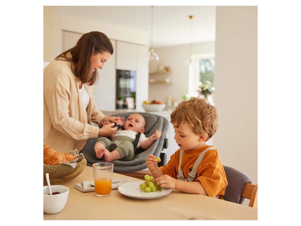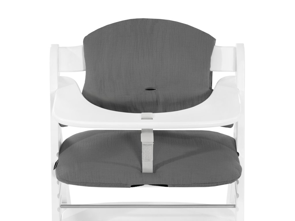 Jednoduché upevnenie k jedálenskej stoličke - Jednoduché, rýchle a praktické: Polstrovanie na stoličku Select je možné ľahko pripevniť k vysokej stoličke. Džersejová verzia sa pripevňuje pomocou háčika a pútka; mušelínová verzia pomocou patentiek. A ak ich potrebujete vyčistiť – stačí ich hodiť do práčky.