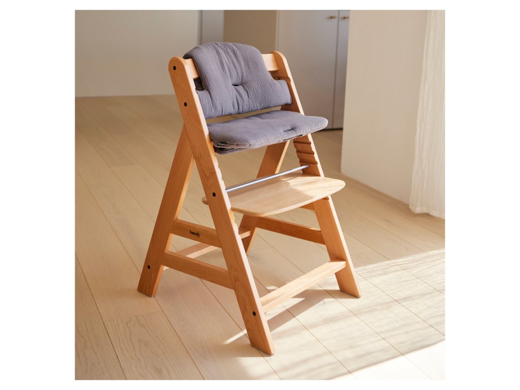 Kompatibilný s bezpečnostným pásom - všetky drevené detské stoličky hauck sú vybavené medzi-nožným a päťbodovým bezpečnostným pásom. Oboje môžete používať aj v spojení s polstrovaním na sedadlo. Vaše dieťatko tak bude nielen v pohodlí ale aj v bezpečí – v každom veku, v každej situácii!