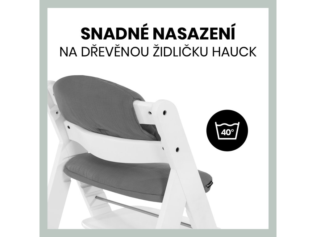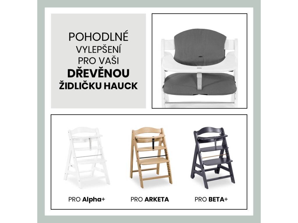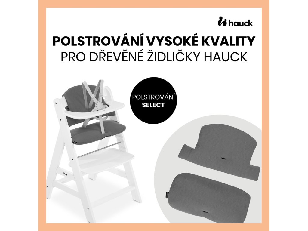 Naozajstné pohodlie vďaka dvojitému polstrovaniu - Hľadáte mimoriadne pohodlnú súpravu polstrovania pre vysokú drevenú stoličku vášho dieťaťa? Polstrovanie Select sa perfektne hodí na drevené detské stoličky hauck Alpha+, Beta+ a Arketa. A vďaka dvojitému polstrovaniu opierky chrbta bude mať vaše dieťa pri jedle a hraní mimoriadne pohodlie.