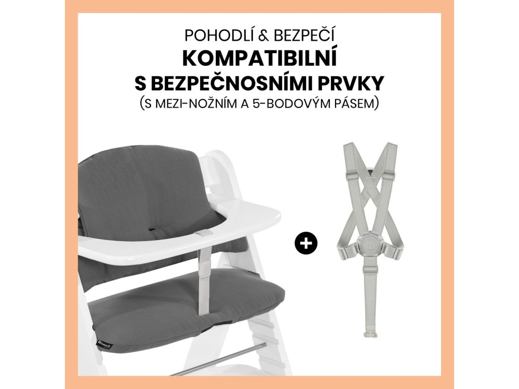 SEDADLO JE KOMPATIBILNÉ S MEDZI-NOŽNÝM A 5-BODOVÝM BEZPEČNOSTNÝM PÁSOM // Všetky drevené stoličky hauck sú vybavené rozkrokovým a päťbodovým bezpečnostným pásom. Polstrovanie je plne kompatibilné s týmito bezpečnostnými prvkami tak, aby vaše dieťatko mohlo byť vždy v pohodlí a bezpečí – v každom veku!