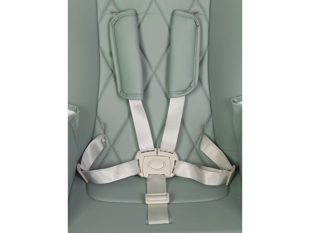 Bezpečnosť na prvom mieste: Päťbodové bezpečnostné pásy, kroková zábrana a široké gumové stopery zabezpečujú stabilitu a bezpečnosť aj pre nepokojné deti.