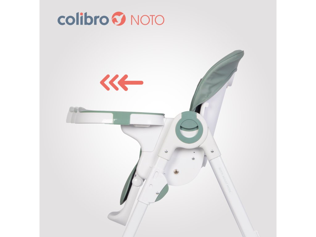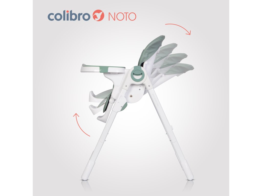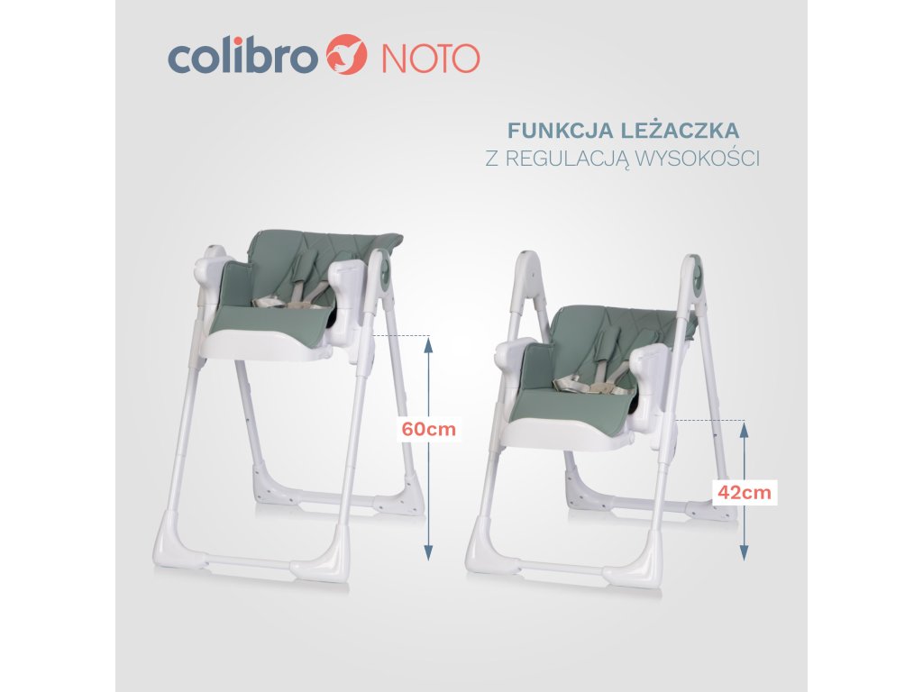 Multifunkčnosť: Colibro Noto slúži nielen ako jedálenská stolička, ale aj ako lehátko pre dieťa. Vďaka siedmim nastaveniam výšky môžete stoličku jednoducho prispôsobiť výške stola alebo ju zložiť pre ľahké uskladnenie.