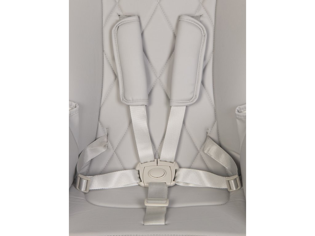 Bezpečnosť na prvom mieste: Päťbodové bezpečnostné pásy, kroková zábrana a široké gumové stopery zabezpečujú stabilitu a bezpečnosť aj pre nepokojné deti.