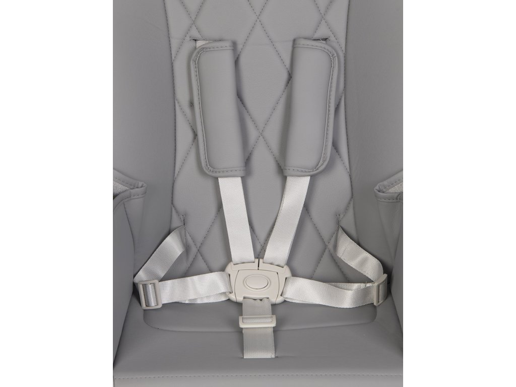 Bezpečnosť na prvom mieste: Päťbodové bezpečnostné pásy, kroková zábrana a široké gumové stopery zabezpečujú stabilitu a bezpečnosť aj pre nepokojné deti.