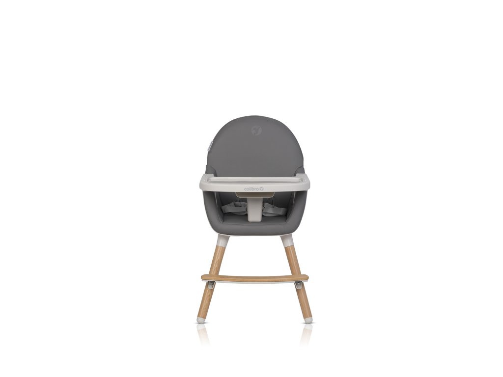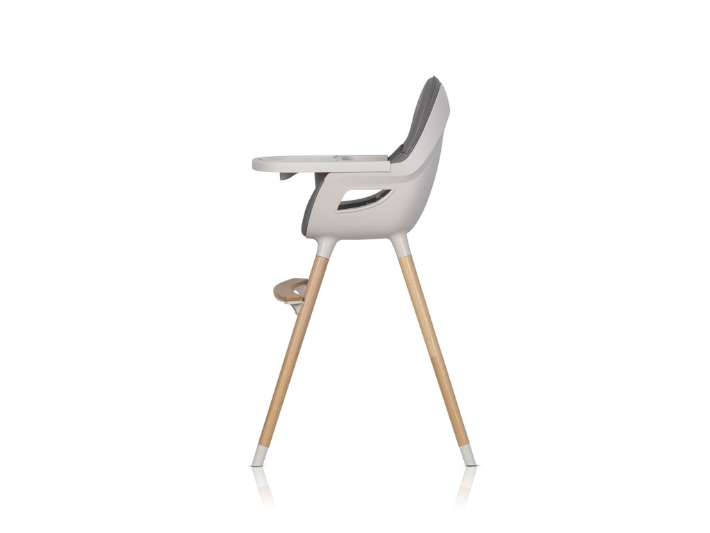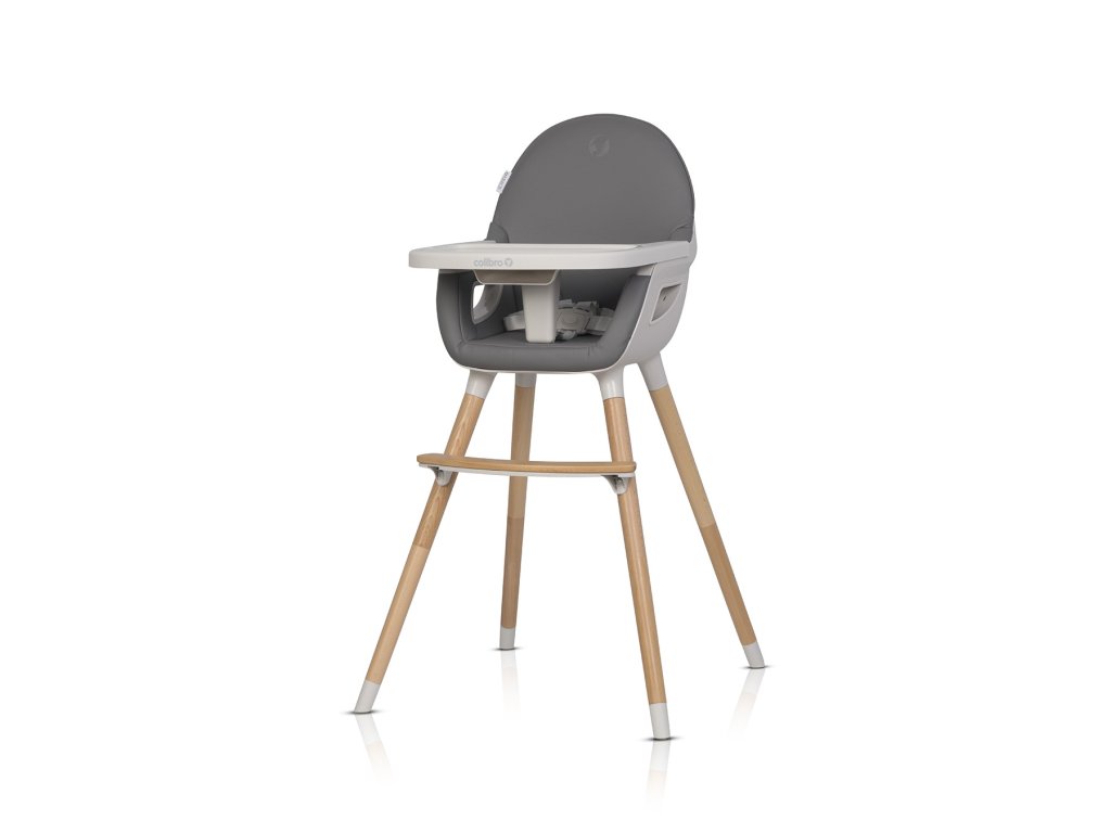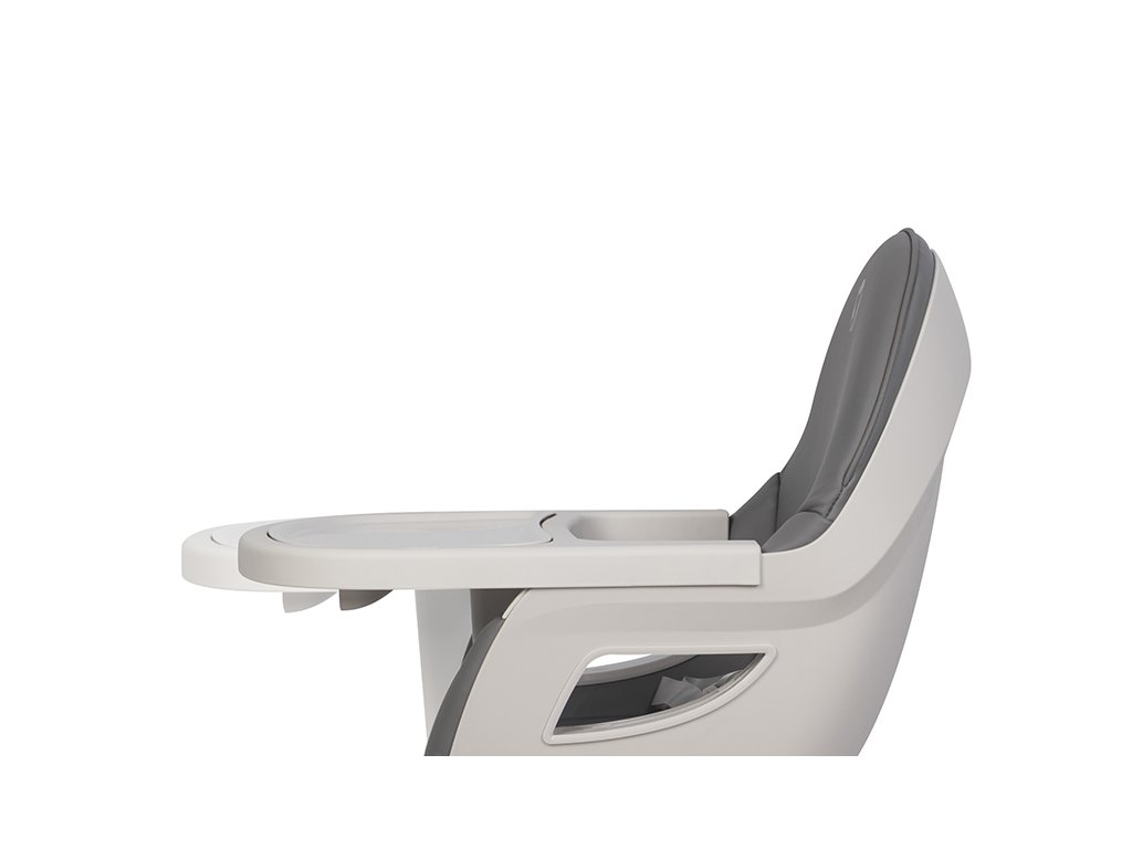 Bezpečnosť predovšetkým: Stolička je vybavená 5-bodovými bezpečnostnými pásmi a táckou s dodatočným krokovým zabezpečením. Stabilitu zaisťuje jednotná konštrukcia sedadla a protišmykové nožičky.