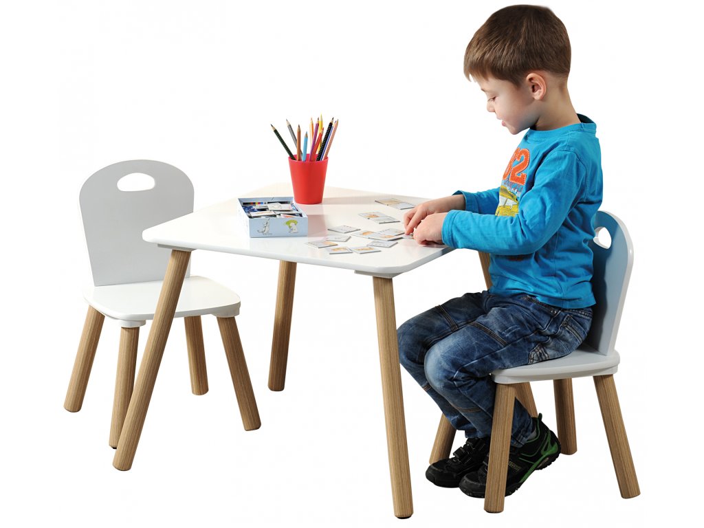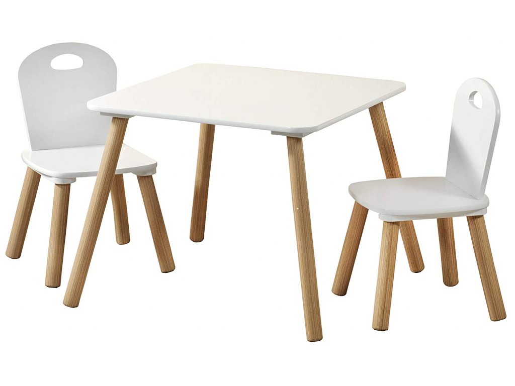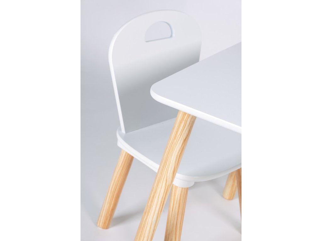 Elegantný detský stôl so stoličkami v prevedení bielej a prírodnej farbe od nemeckého výrobcu. Stolček je ideálnym miestom pre hranie, maľovanie, občerstvenie alebo pre posedenie s kamarátmi. Originálny doplnok do detskej izby v jednoduchom čistom dizajne. Nábytok je robustný a stabilný, ľahko sa čistí.