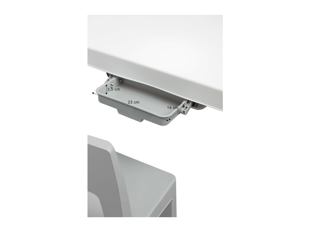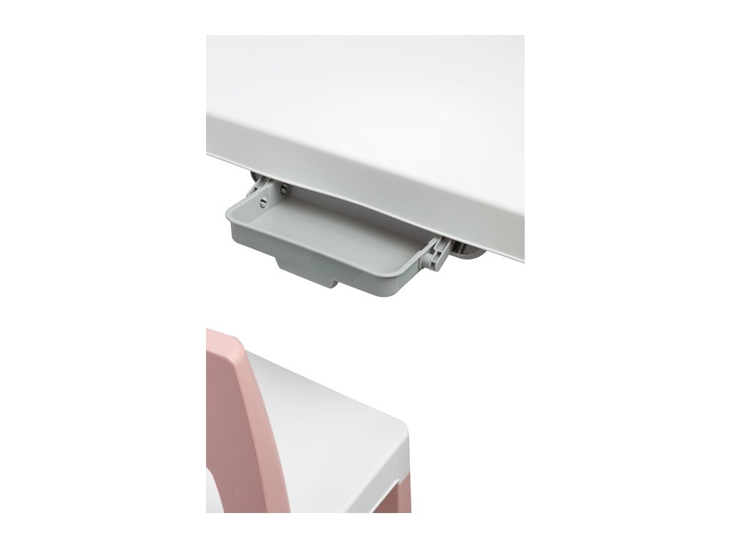 Stôl Monti má dve praktické zásuvky umiestnené tesne pod doskou, ktoré poskytujú dodatočný úložný priestor na kresliace potreby a malé hračky. Jeho moderný dizajn a odolná konštrukcia z neho robia nielen funkčný, ale aj štýlový doplnok detskej izby.