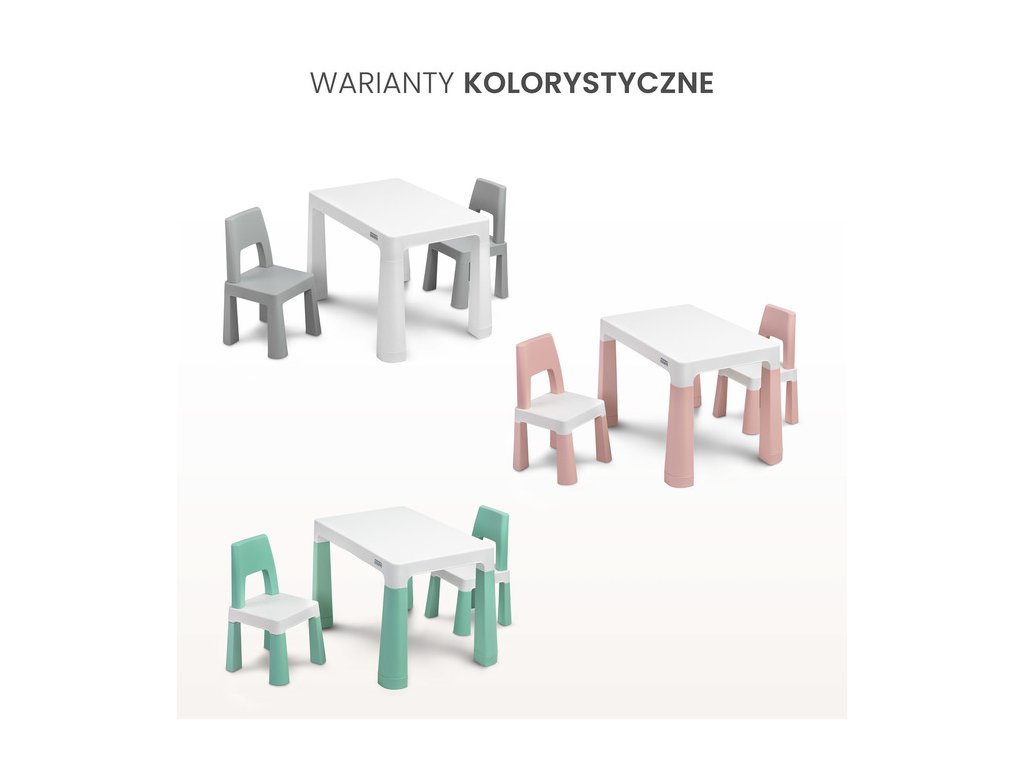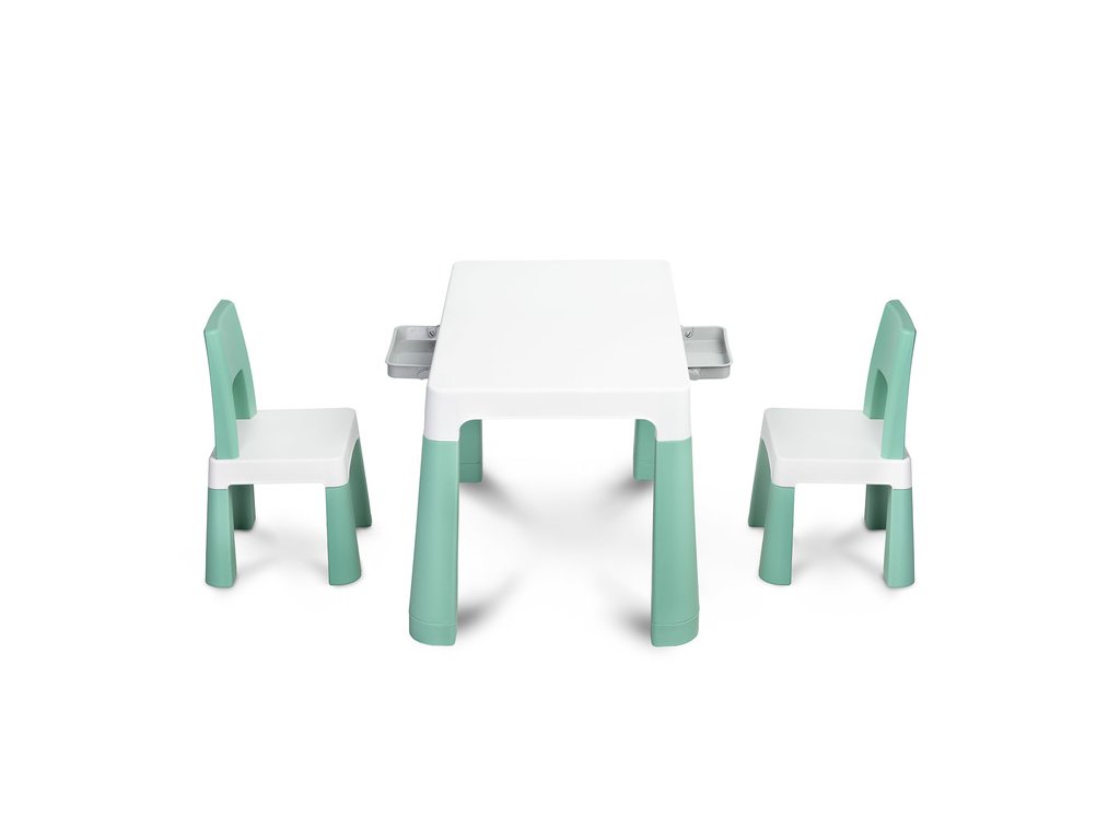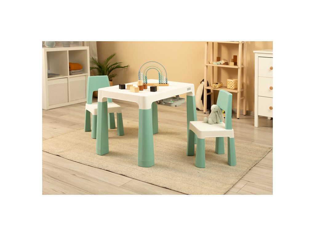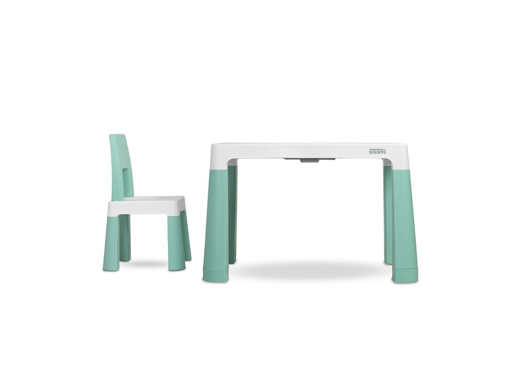 Monti je všestranný detský stôl so stoličkami. S jeho pomocou si ľahko vytvoríte kútik na umeleckú tvorbu alebo zábavu doma aj vonku. Súprava je vyrobená z kvalitného plastu - bezpečného a odolného voči rôznym rozmarom počasia a divokým hrám. Stôl a stoličky sú ľahké, takže ich dieťa môže prenášať samo. Vďaka jednoduchému dizajnu sa Monti dá ľahko zostaviť - stačí stlačiť prvky k sebe. Stôl má 2 zásuvky, ktoré sa skrývajú pod doskou stola, a je tiež možné znížiť výšku o 6 cm.