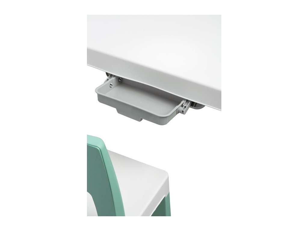 Stôl Monti má dve praktické zásuvky umiestnené tesne pod doskou, ktoré poskytujú dodatočný úložný priestor na kresliace potreby a malé hračky. Jeho moderný dizajn a odolná konštrukcia z neho robia nielen funkčný, ale aj štýlový doplnok detskej izby.