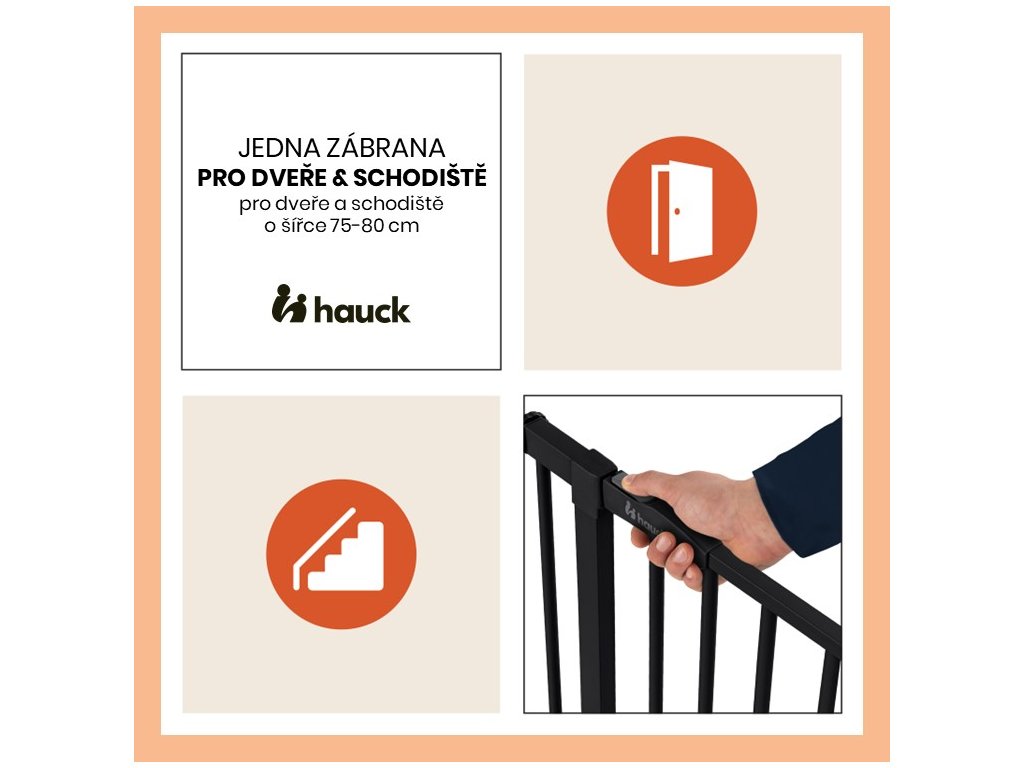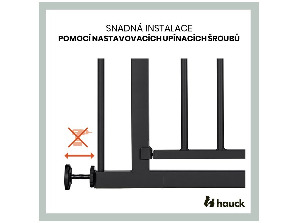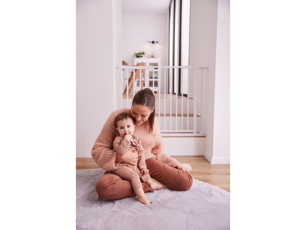Či už doma, u starých rodičov alebo na dovolenke, zábrana sa jednoducho upevní na rám dverí, na zábradlie alebo len na stenu pomocou nastaviteľných skrutiek. Vďaka nim sa zábrana ľahko upevní a opäť odstráni bez zanechania akýchkoľvek stôp. Zábranu možno ľahko otvoriť jednou rukou na oboch stranách a opäť ľahko zatvoriť.