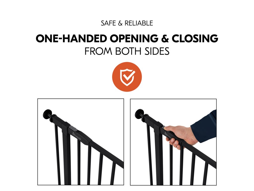 Zábranu možno ľahko otvoriť jednou rukou na oboch stranách a po zatvorení sa bezpečne uzamkne na mieste.