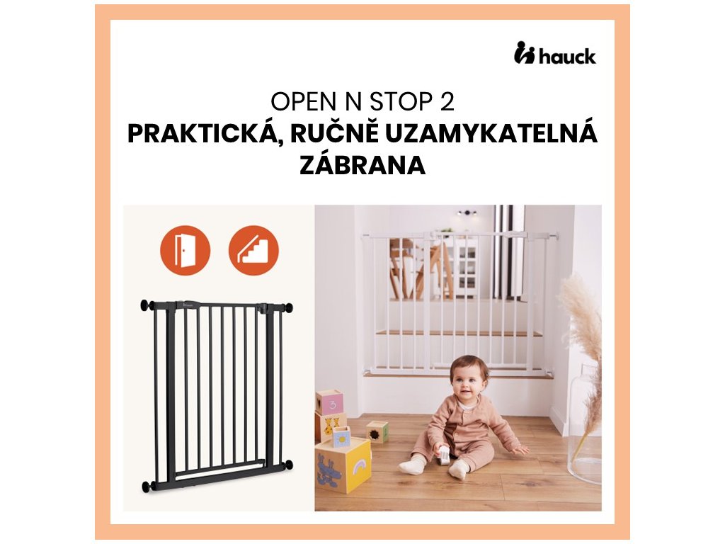 Zábrana Open N Stop 2 je vhodná nielen pre rámy so štandardnou šírkou 75-80 cm, ale môžete si vybrať aj z ponuky zábran s predĺžením 9 cm alebo 21 cm. Zábranu je možné pripevniť aj na okrúhle zábradlie pomocou samostatných hauck Y-adaptérov (upínacích skrutiek).