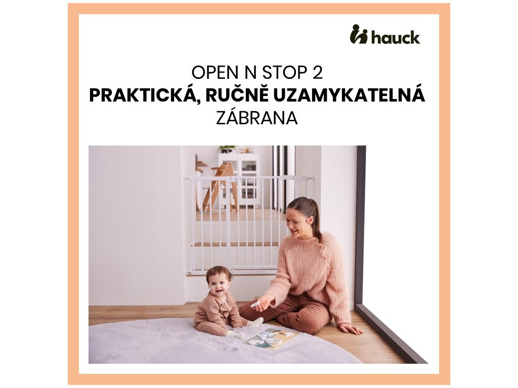 Zábrana Open N Stop 2 je vhodná nielen pre rámy so štandardnou šírkou 75-80 cm, ale môžete si vybrať aj z ponuky zábran s predĺžením 9 cm alebo 21 cm. Zábranu je možné pripevniť aj na okrúhle zábradlie pomocou samostatných hauck Y-adaptérov (upínacích skrutiek).