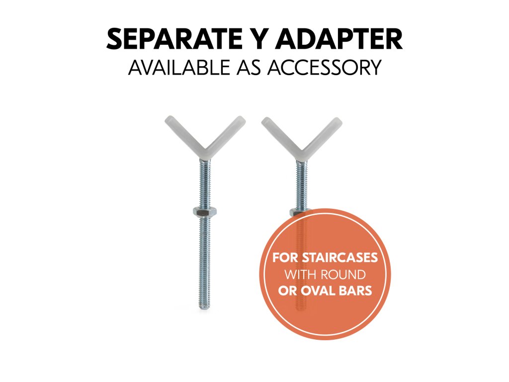 Zábranu možno namontovať aj na okrúhle zábradlia bez vŕtania vďaka upínacím adaptérom hauck Y.