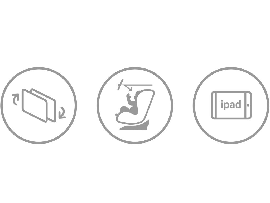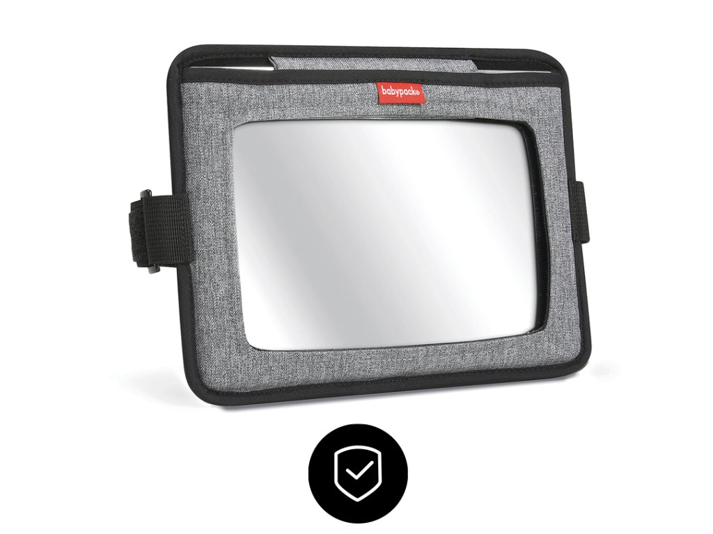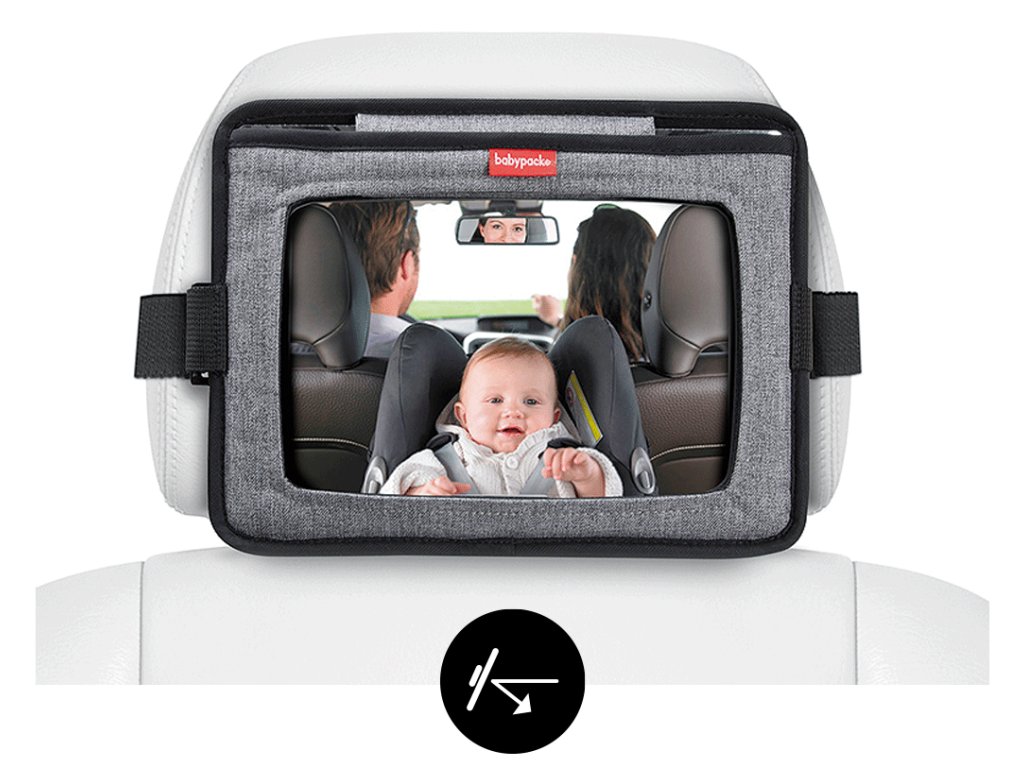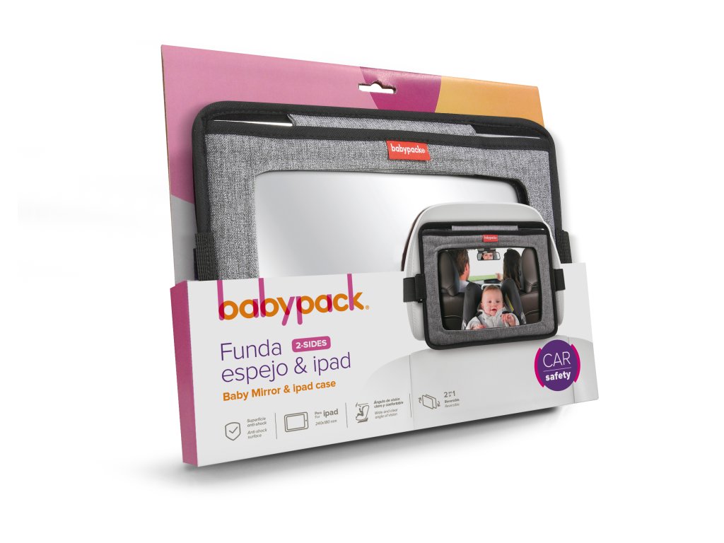 Na jednej strane je zrkadlo, ktoré vám umožňuje mať dieťa neustále na očiach, keď je dieťa v autosedačke otočené proti smeru jazdy. Druhá strana slúži ako praktické cestovné puzdro na iPad.