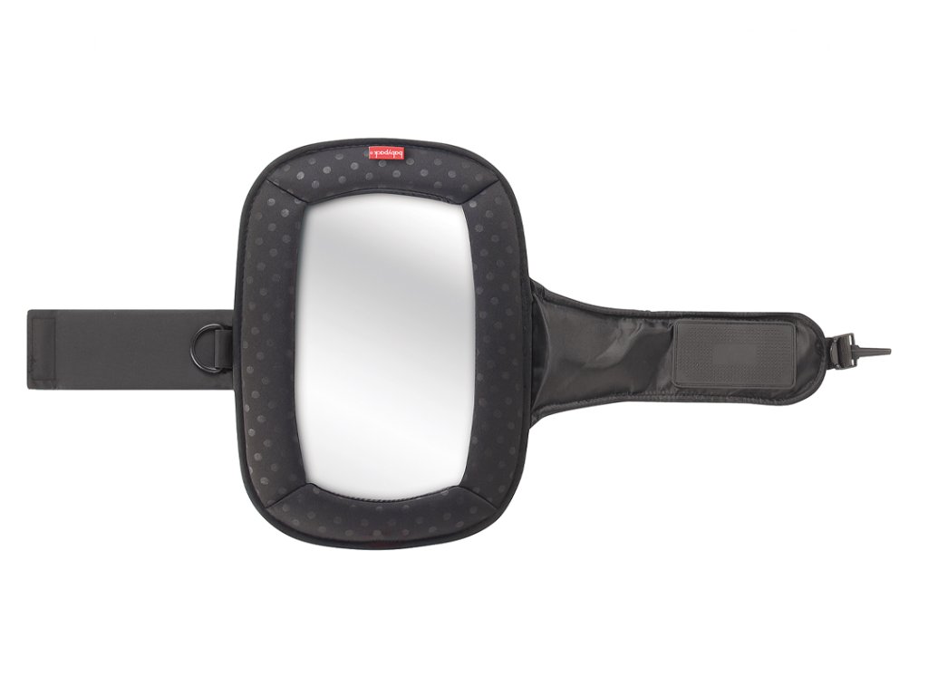 A) Široké spätné zrkadlo s čistým uhlom pre bezpečný kontakt s vaším dieťatkom na cestách. Vďaka zrkadle bude vaše dieťatko s vami v neustálom kontakte. Konvexné tvar zrkadlá ponúka čistý pohľad bez prekážok ako na dieťa, tak na jeho okolie. Vďaka inštalácii na opierke hlavy zadného sedadla bude mať vaše dieťatko jasný výhľad na vás i zo svojej autosedačky.
