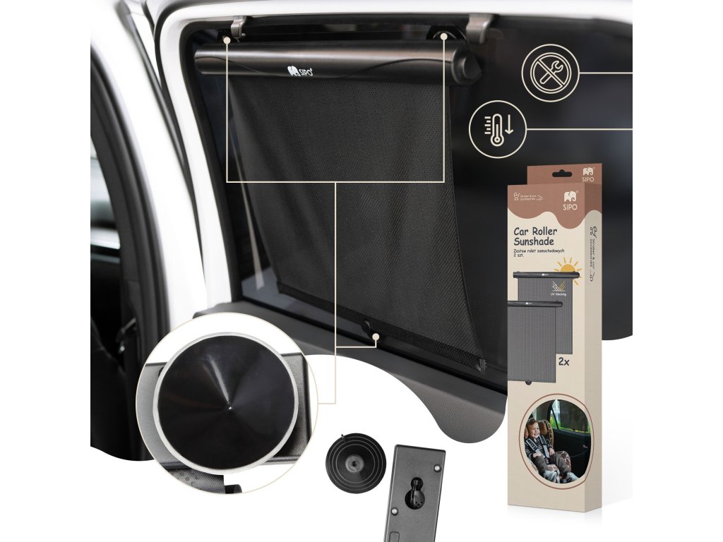 Sipo Slnečná clona rolovacia, 2ks, čierna