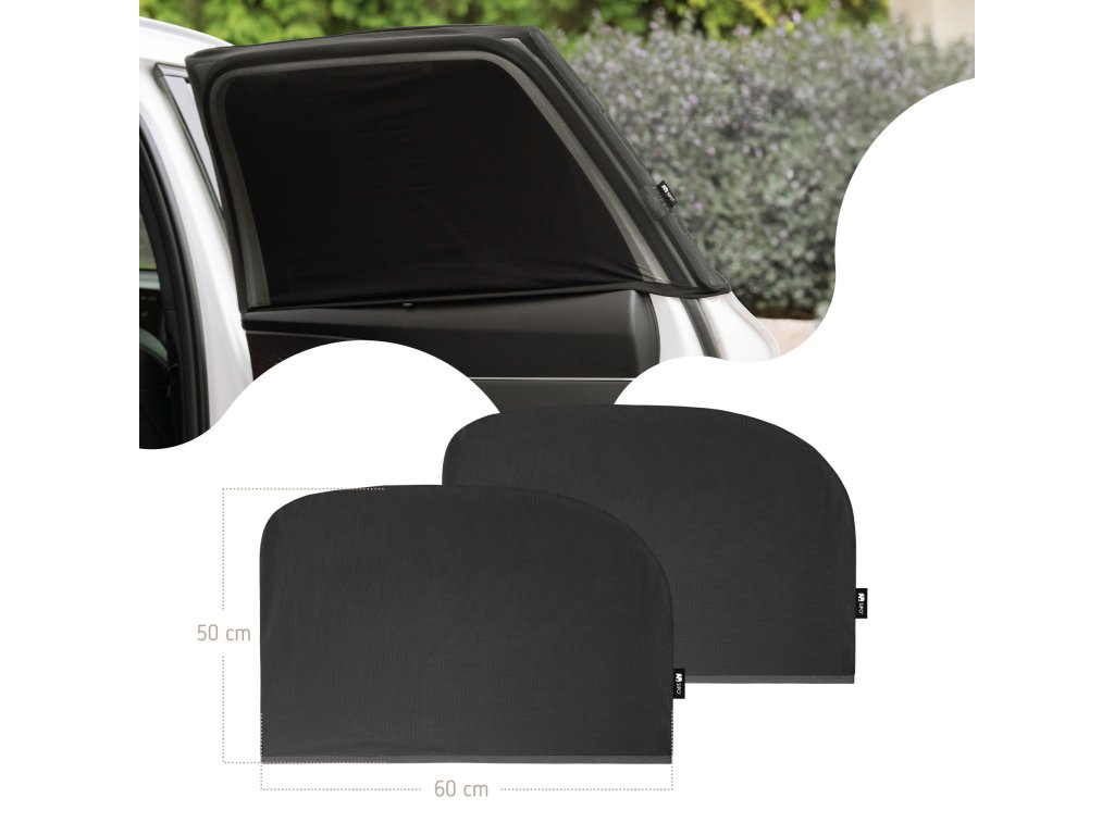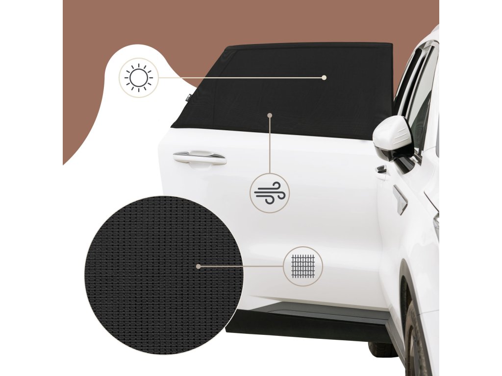Praktická sada dvoch sieťových slnečných clôn určených na zatienenie zadných bočných okien automobilu. Produkt bol vytvorený s ohľadom na pohodlie detí cestujúcich na zadných sedadlách a je vyrobený z ľahkého, ale odolného polyesterového materiálu. Účinne blokuje slnečné svetlo tým, že zakrýva celú plochu okna, čím znižuje hromadenie tepla v interiéri a zvyšuje tepelný komfort v horúcich dňoch. Sieťovina nielen chráni pred slnečným žiarením, ale tiež zvyšuje súkromie v aute, čo je obzvlášť užitočné pri činnostiach, ako je dojčenie.