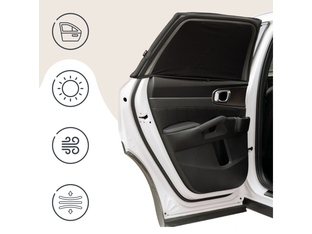 Najväčšou výhodou dizajnu slnečnej clony je to, že umožňuje voľné otváranie a zatváranie okna bez nutnosti odstraňovania látky. Univerzálna veľkosť XL je vhodná pre väčšinu vozidiel – od štandardných osobných automobilov po SUV a kombi. Nie je potrebné žiadne lepidlo ani prísavky – stačí slnečnú clonu natiahnuť cez rám dverí a rýchlo a bez poškodenia ju nainštalovať a odstrániť.