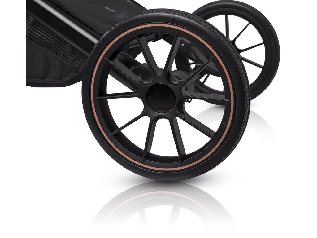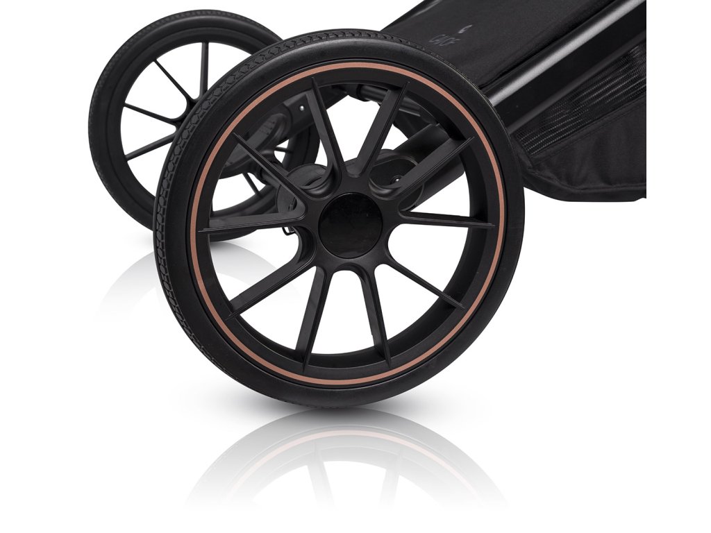 - Komfortná jazda: Veľké kolesá s gumovými pneumatikami a výbornou amortizáciou zabezpečujú hladkú jazdu. Je možnosť dokúpenia nafukovacích kolies pre ešte väčší komfort.