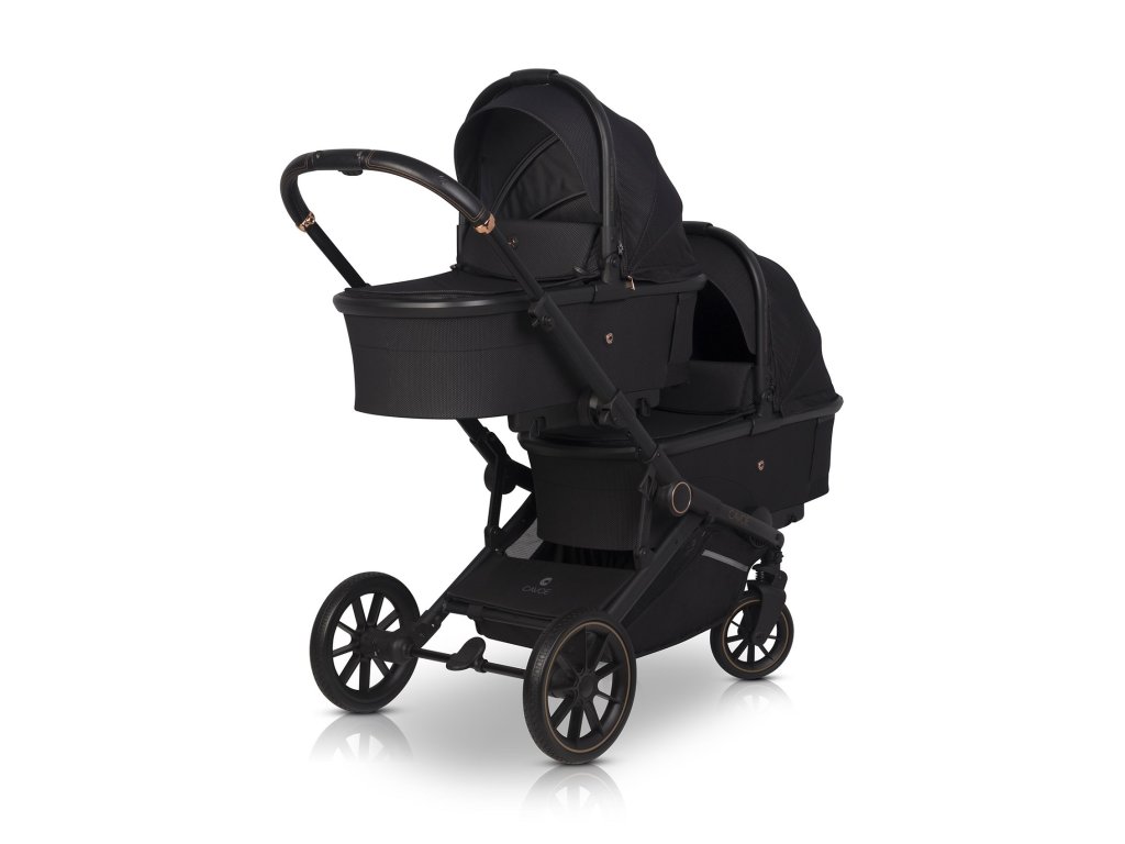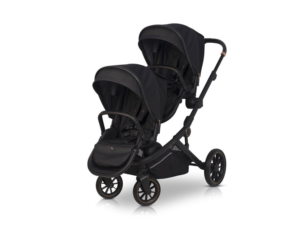 - Flexibilná konfigurácia: Vďaka inovatívnemu systému regulácie výšky zadného modulu môžete kombinovať sedadlá, gondoly a autosedačky podľa potreby. Sedadlá je možné nastaviť v ľubovoľnom smere, vrátane možnosti, aby deti sedeli tvárou k sebe.