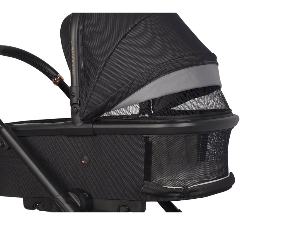 - Bezpečnosť a ochrana: Sedadlá sú vybavené 5-bodovými bezpečnostnými pásmi, slnečnými strieškami s rozšíriteľnými sekciami, pláštenkami a moskytiérami.