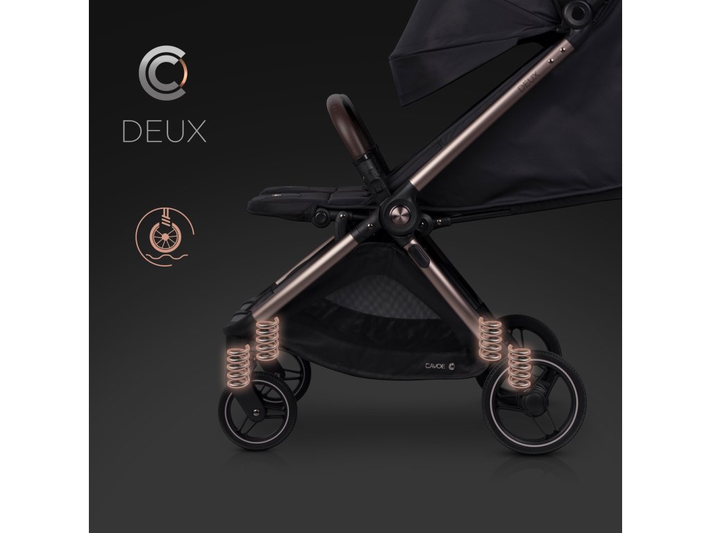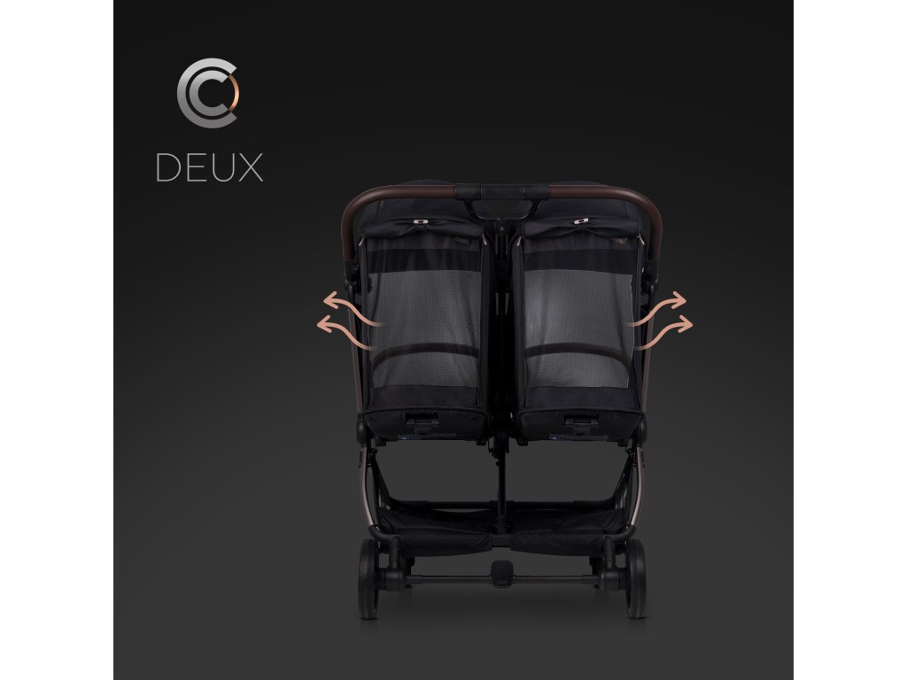 CAVOE DEUX je dokonalá voľba pre rodičov dvojčiat alebo dvoch detí v krátkom veku za sebou, ktorí hľadajú prémiový, praktický a štýlový kočík s revolučným systémom skladania. Investícia do kvality, ktorá vám uľahčí každodenný život.
