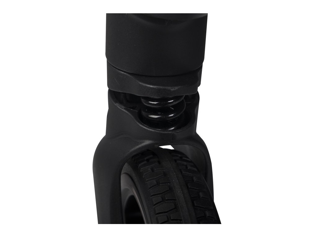 Široký rozchod predných kolies zabezpečuje vynikajúcu manévrovateľnosť. Budete prekvapení, ako ľahko zvláda zákruty. Bez námahy ho povedete jednou rukou. Otočné, samousmerňujúce predné kolesá s priemerom 15 cm a zadné kolesá s priemerom 19 cm sú vyložiskované a vyrobené z polyuretánu, čo zaručuje tichú a plynulú jazdu.