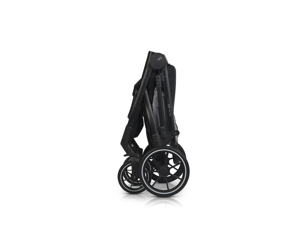 Kolesá a odpruženie: Veľké gumové kolesá bez duší a výborné odpruženie zabezpečujú hladkú jazdu. Predné kolesá sú otočné s možnosťou zablokovania pre priamu jazdu. Kočík má jednoducho ovládateľnú brzdu, ktorú možno aktivovať aj v sandáloch alebo žabkách.