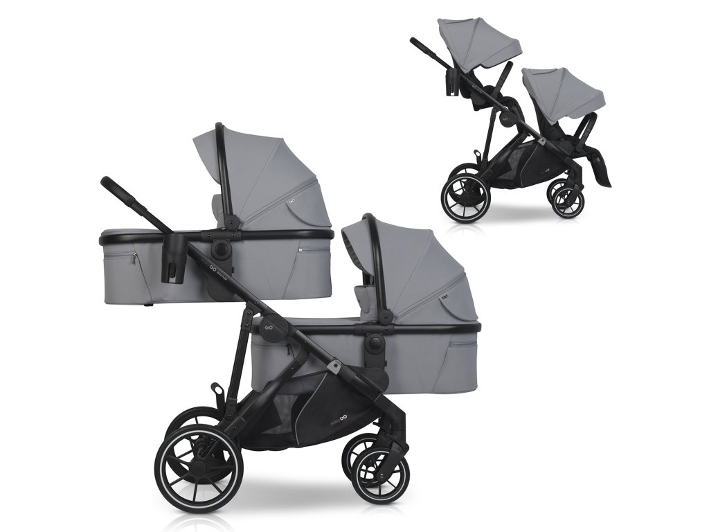 Súrodenecký kočík EasyGo Duoflex Cloudy Gray 2 športové časti 2 vaničky