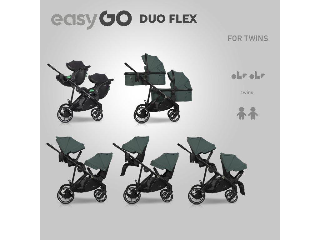 Súrodenecký kočík EasyGo Duoflex Sage Green, 2 športové časti , 1 hlboká vanička