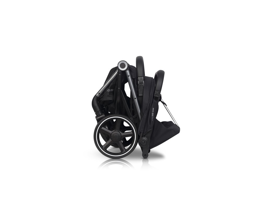 - Kompaktné skladanie: Vďaka systému DUAL FOLD sa kočík zloží do malej kocky, ľahko ovládateľnej jednou rukou, a sám stojí po zložení.