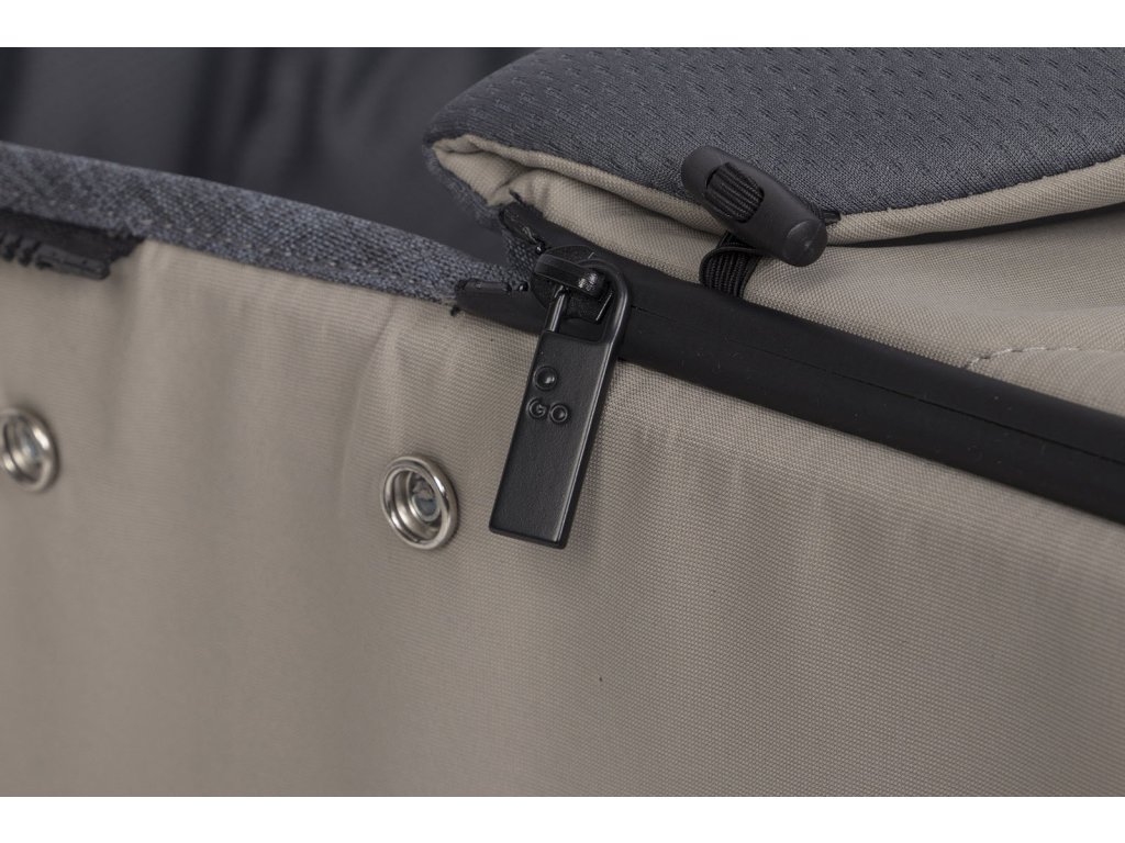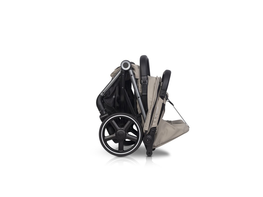 - Kompaktné skladanie: Vďaka systému DUAL FOLD sa kočík zloží do malej kocky, ľahko ovládateľnej jednou rukou, a sám stojí po zložení.
