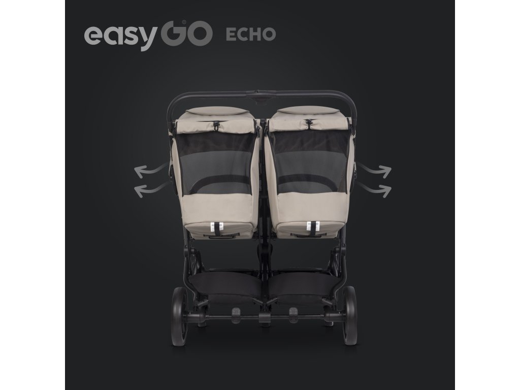 Ultra ľahký a obratný kočík pre dve deti – ideálny pre dvojčatá alebo súrodencov narodených rok po roku. EasyGo Echo je výsledkom viac než 15 rokov skúseností značky EasyGo, ktorá je lídrom vo výrobe kočíkov pre dvojčatá a súrodencov. Tento kočík kombinuje komfort detí s pohodlím rodičov, vďaka čomu je ideálnym spoločníkom na každodenné prechádzky.