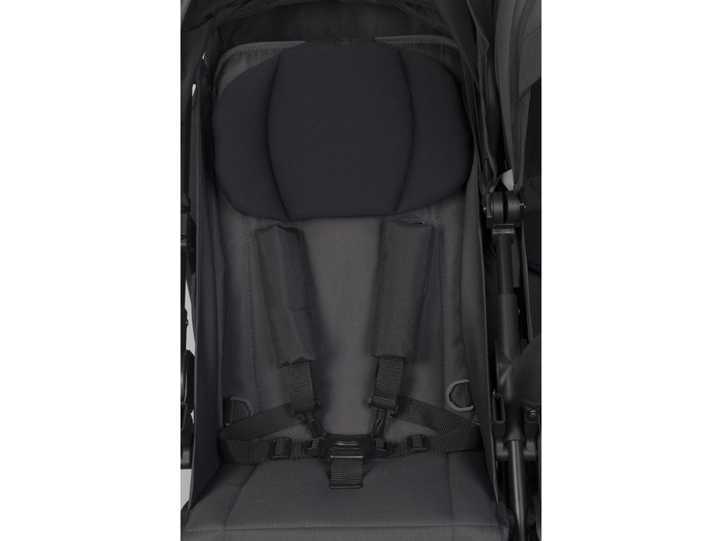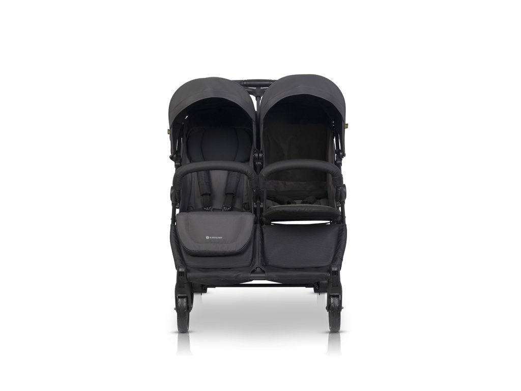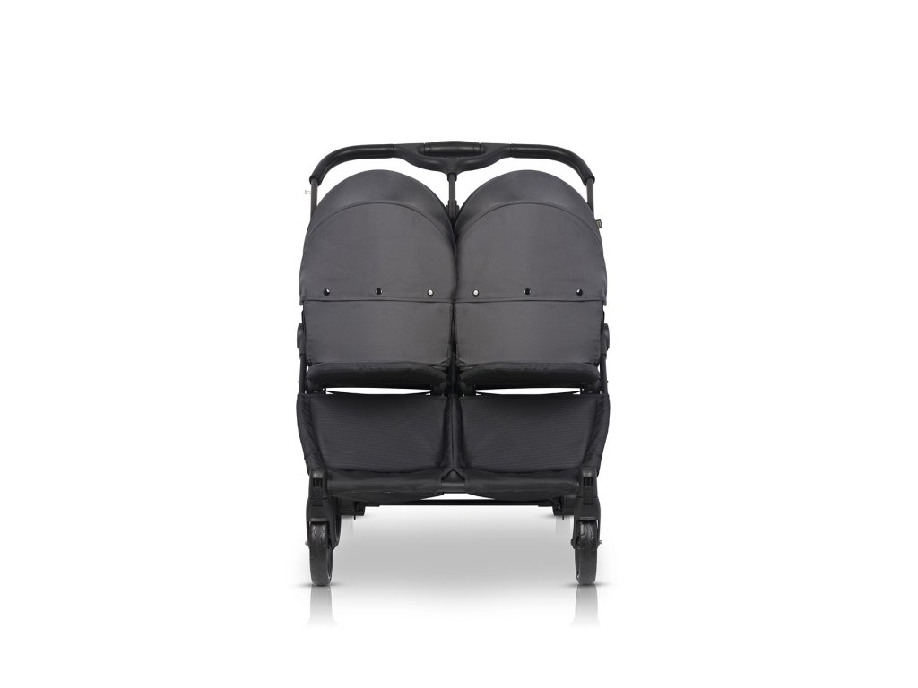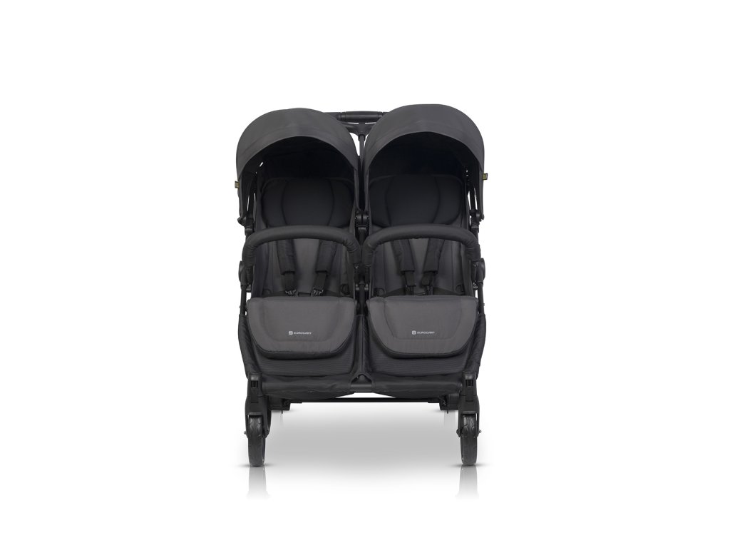 - Komfort a pohodlie: Každé sedadlo je nezávisle nastaviteľné, vrátane opierky, podnožky a slnečnej striešky. Kočík je vybavený veľkými slnečnými strieškami s UV filtrom 50+, ktoré chránia pred slnkom.