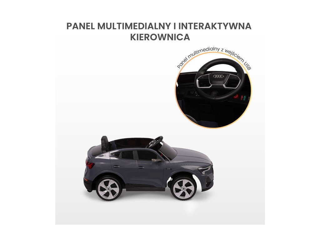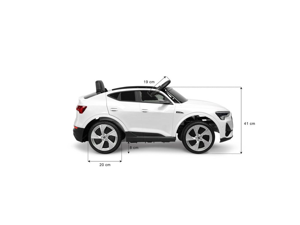 Audi E-tron Sportback je batériové auto s licenciou Toyz, ktoré kombinuje elegantný dizajn s dynamikou elektrického pohonu. Model sa vyznačuje líniou karosérie charakteristickou pre Audi, modernými úzkymi zrkadlami a kombinovaným zadným svetlom. Vnútornou silou E-tron Sportback je pohon všetkých kolies s motormi s výkonom 45 W. Sú poháňané 7 Ah batériou. Pohodlie a bezpečnosť hry zabezpečujú: zadné tlmiče, kolesá vyrobené z vysoko kvalitnej peny EVA, sedadlo z eko kože, 3-bodové pásy, pomalý štart, dva rýchlostné režimy a automatická brzda. Nabíjateľná batéria má aj vybavenie pre rodičov: diaľkové ovládanie a výsuvné kolesá pre jednoduchú prepravu. Čo získate výberom batériového vozidla Audi E-tron Sportback pre vaše dieťa: