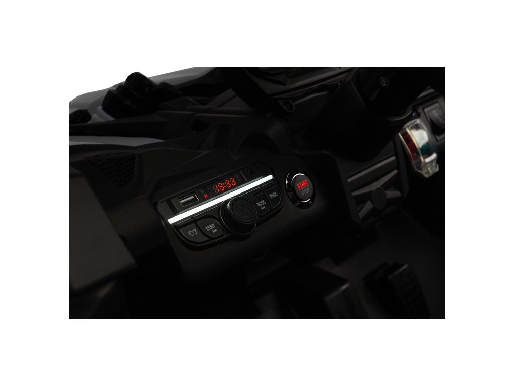 - Multimediálny panel s USB, AUX, Bluetooth, FM rádiom a prednastavenými melódiami