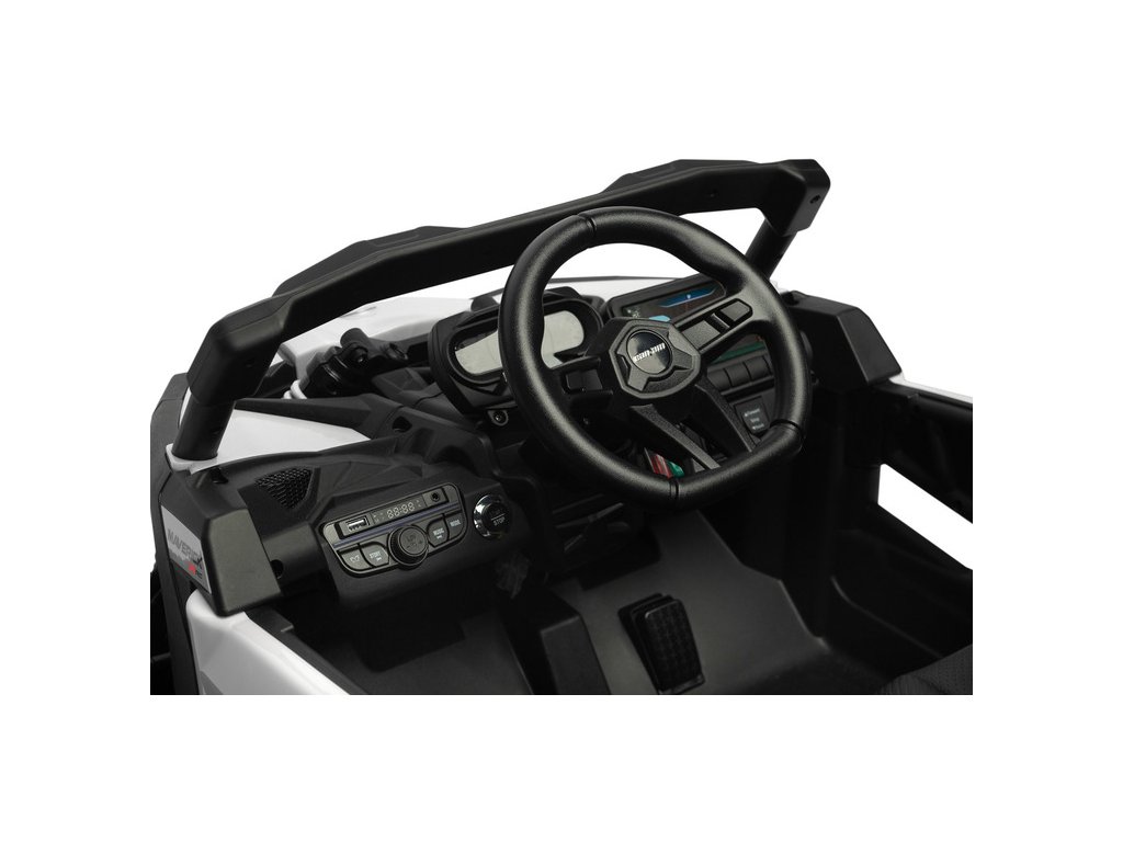 Maverick je batériový štvorkolkový/buginový automobil s nezvyčajne vysokým výkonom . Je vybavený pohonom všetkých štyroch kolies, pričom každé z nich je poháňané motorom s výkonom 200 W! To zaručuje, že vozidlo zvládne aj tie najťažšie trasy. Vďaka výkonnej 24V/7Ah batérii si deti užijú dlhú jazdu a indikátor napätia vám pripomenie, kedy je potrebné vozidlo nabiť. Maverick má moderný multimediálny panel s LED svetelným efektom. Je vybavený vstupmi USB, AUX a Bluetooth , ako aj FM rádiom . S maximálnym zaťažením až 30 kg tento terénny automobil zaručuje pohodlie a bezpečnosť jazdy. Zvýšenú bezpečnosť zabezpečuje bedrový bezpečnostný pás , funkcia pomalého rozjazdu a automatické brzdenie . Navyše, vďaka diaľkovému ovládaniu môžu rodičia plne ovládať vozidlo aj počas prechádzok. Maverick má tiež kolesá z peny EVA , zadné tlmiče a sedadlo z eko kože. Dokonalé vozidlo pre skutočných dobrodruhov! Kľúčové vlastnosti: