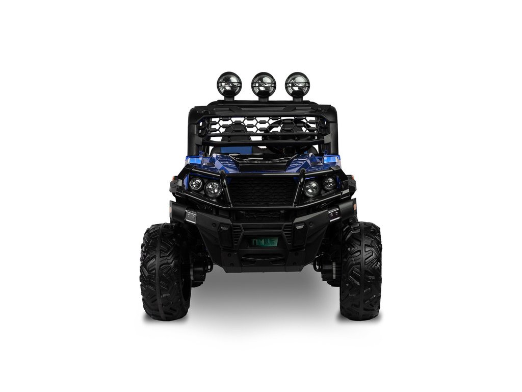 Timus je veľké vozidlo na batériový pohon v terénnej verzii. Má všetky kľúčové prvky, vďaka ktorým sa vaše dieťa bude cítiť ako pri jazde v skutočnom terénnom vozidle : 35-centimetrové kolesá s rozchodom kolies, 4 výkonné motory , vysokú svetlú výšku až 20 cm a priečku s tromi LED svetlometmi. Pohodlie jazdy zabezpečí veľké a pohodlné sedadlo z eko-kože, vybavené bezpečnostným pásom. Vďaka veľkej veľkosti Timusa sa o niečo staršie deti naučia zmysel pre priestor, ako aj zodpovednosť a samostatnosť. Na druhej strane, rodičia menších detí môžu vozidlo ovládať na diaľku alebo použiť funkciu hojdania, ktorá vozidlo mierne posúva dopredu a dozadu. Čas strávený v aute vám navyše spríjemní multimediálny panel s USB a Bluetooth.